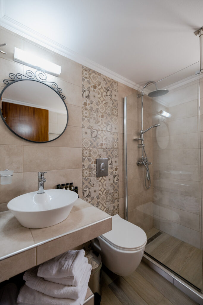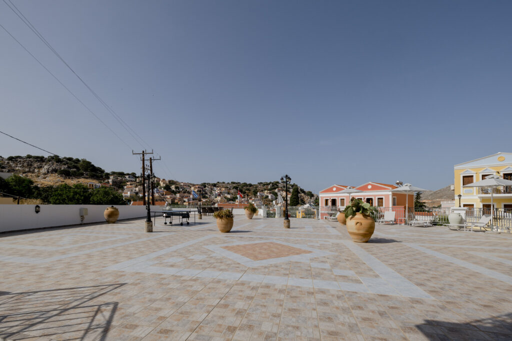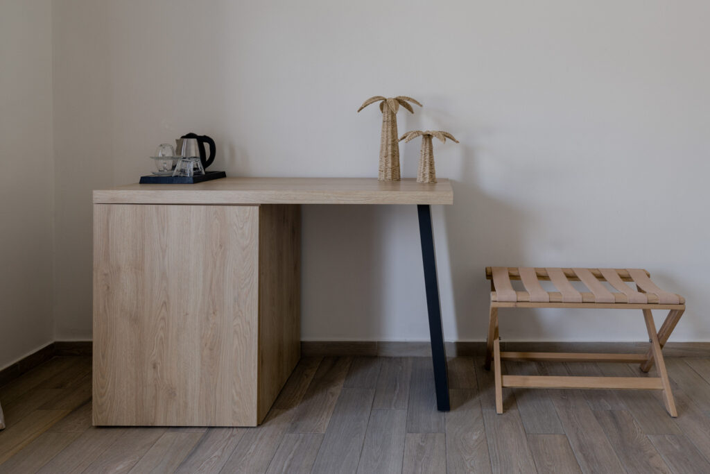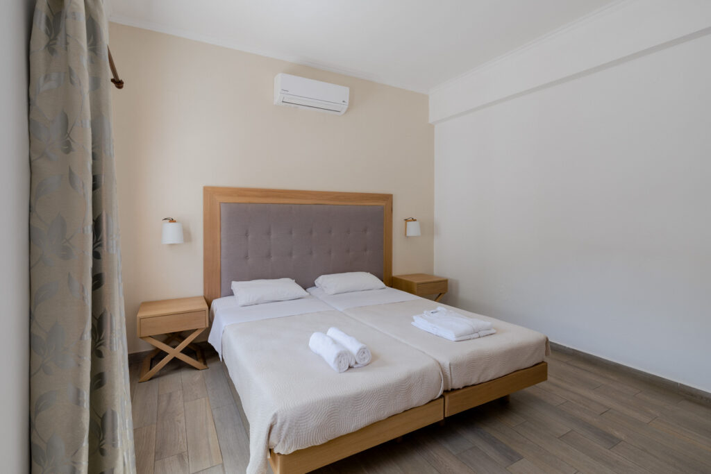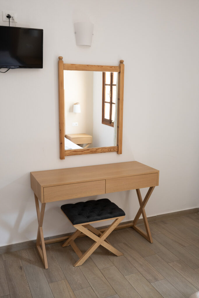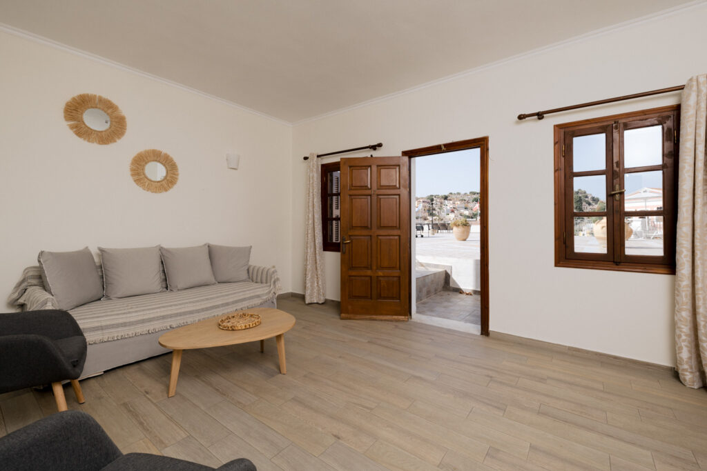 Our Exclusive Junior Suites, with a terrace, can accommodate from 2 to 4 people. They have a main bedroom and have a living room, bathroom, TV and air conditioning. From their terrace you can enjoy the view of our garden.